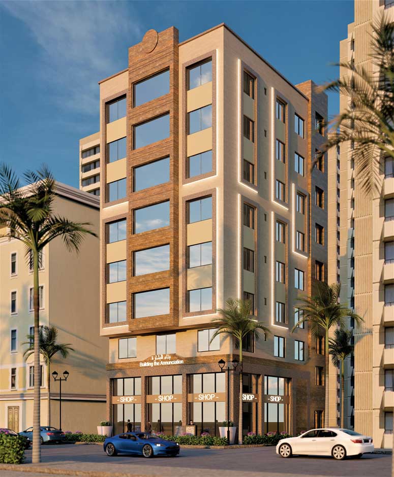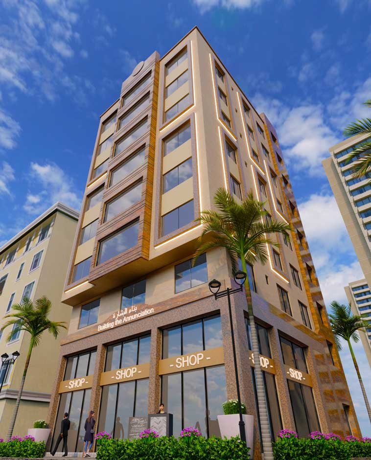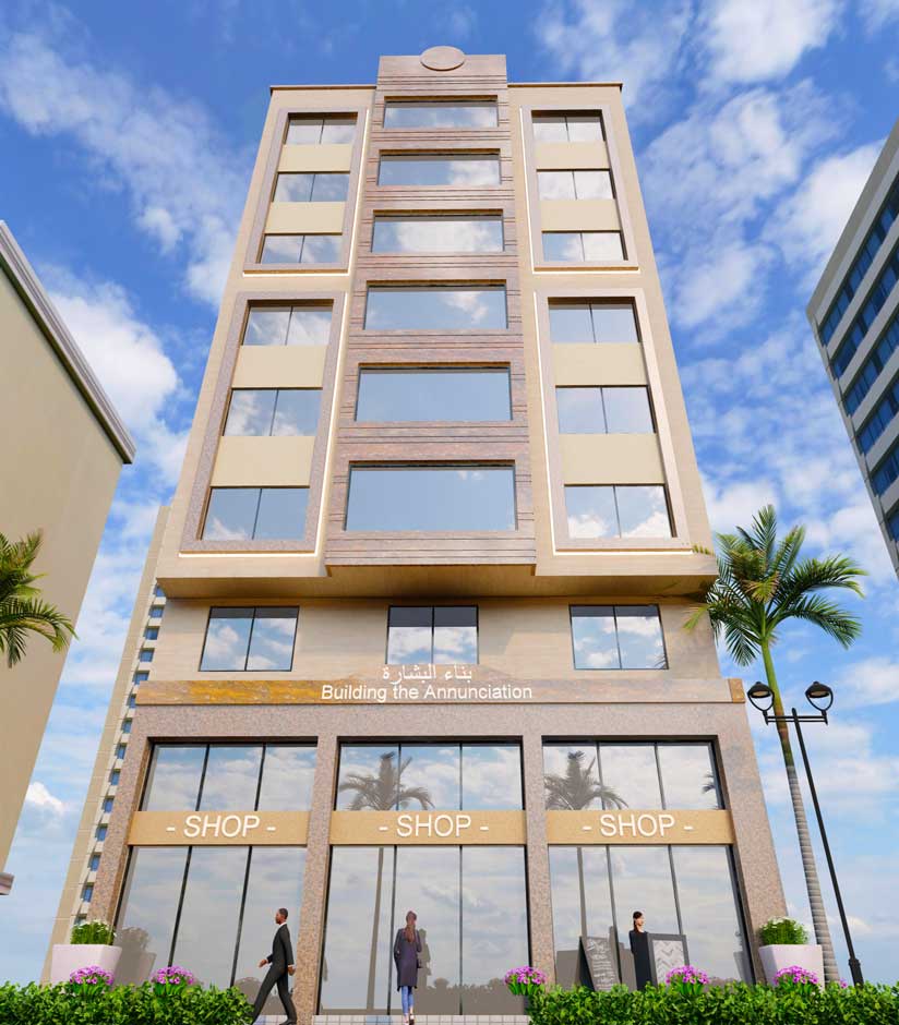 It consists of 8 floors, with 3 offices on each floor, in addition to shops on the ground floor